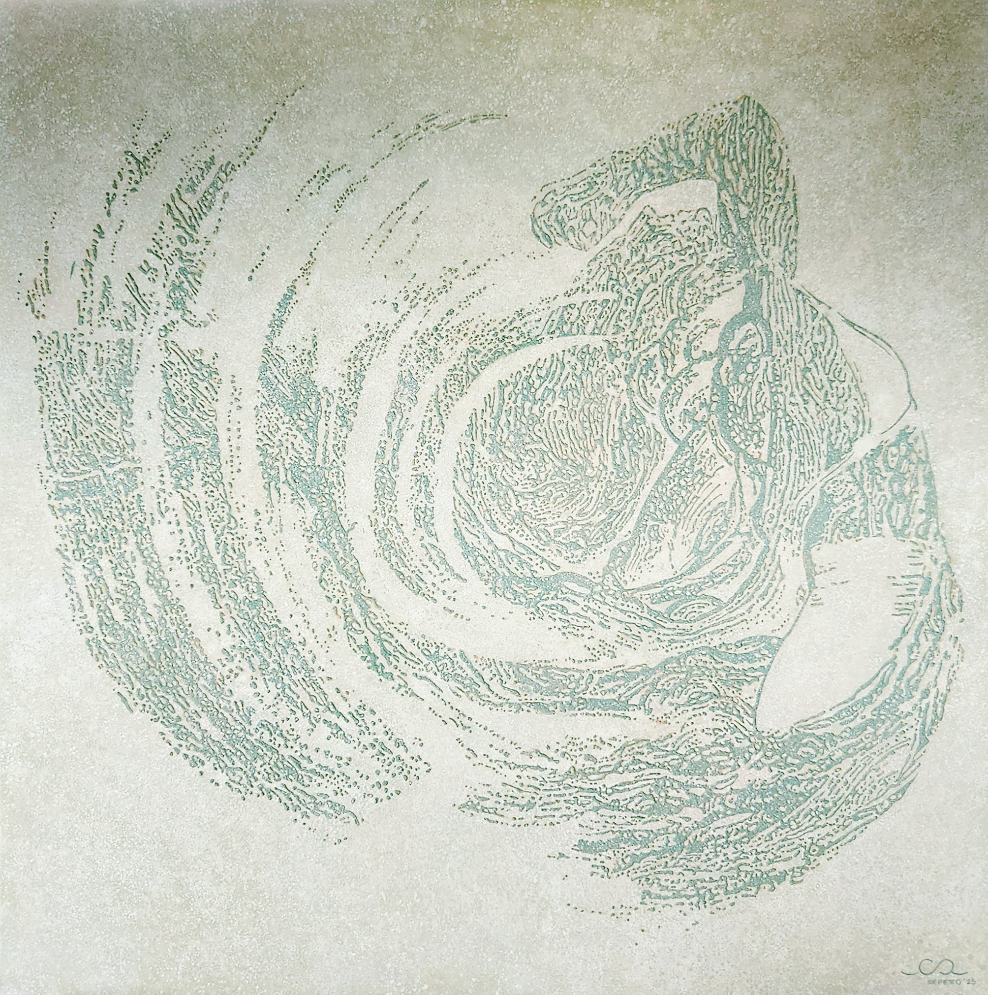 Echoes of Wisdom continues the path initiated with the watercolor series Pieles, where female figures intertwine with nature, representing the union between the earthly and the spiritual world, and revealing the introspective journey toward personal growth. In this new stage, the proposal evolves into a manual technique that deepens in the exploration of textures, where creation becomes a liberating and expressive act.